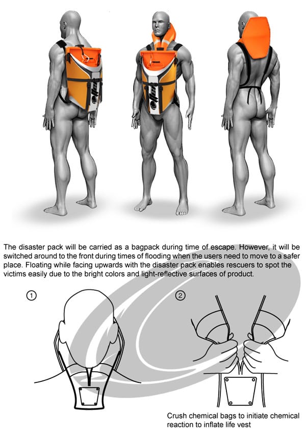 Ο κος Benson εξηγεί: “Όλο το προϊόν έχει σχεδιαστεί ως συσκευή επίπλευσης και βοηθά να τοποθετηθούν θύματα όπως ένας κάστορας που κολυμπά ανάσκελα προς τα πίσω με το κεφάλι έξω από το νερό.”