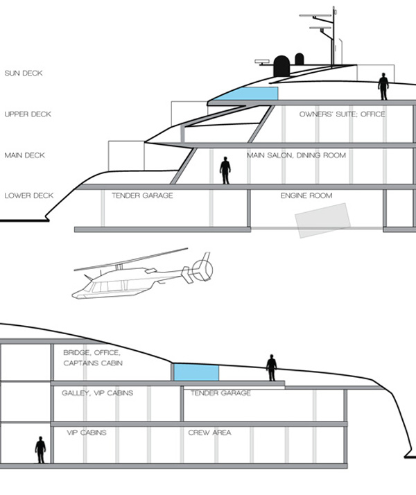 Τι επιδιώκουν οι δημιουργοί; να αποτελέσουν την επόμενη τάση στα yachts και να ετοιμαστούν σκάφη και κομψά και διαφορετικά. Ευθείες γραμμές, σχεδιασμός με έμπνευση το αυτοκίνητο, και μια sporty γενικά αίσθηση.