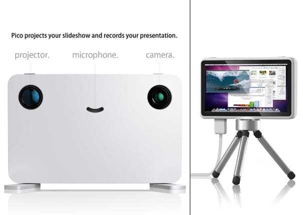 Μην σας μπερδεύει το ‘δύο-σε-ένα’, το “Pico,” μια βίντεοκάμερα/προτζέκτορας είναι και πολύ συμπαθητικό! Με μια καμερούλα στο ένα μάτι, ένα μικρόφωνο και χαμόγελο έχει και δύο αναδιπλούμενα πόδια για να στέκεται και να τραβά τις φωτό μας