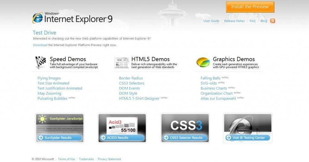 Μια ασυνήθιστη προσέγγιση για τη Microsoft με τον Internet Explorer 9, που πρώτα λανσάρισε τα “Platform previews” που έδειξαν τη νέα μηχανή rendering με πολύ περιορισμένο -…μίνιμαλ, user interface, πρωτού βγει στην αγορά η έκδοση beta που δείχνει τα πλήρη χαρακτηριστικά.
