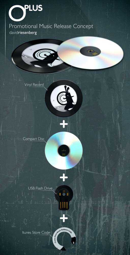 Το O+ Promotional Media Package είναι μια… ντελικάτη, απλή και συναρπαστική ιδέα που βασίζεται μεν σε φυσικό μέσο αλλά πραγματικά ξεχωρίζει: προώθηση ενός τραγουδιού single αλλά και promos με ένα kit που περιλαμβάνει πρόσβαση στη μουσική μέσω ενός δίσκου βινυλίου, ενός CD και ενός USB flash drive αλλά και ενός iTunes Download κώδικα, ΟΛΑ όλα μαζί σε μια συσκευασία.