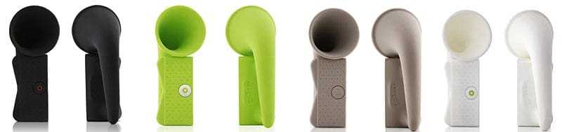 Το συγκεκριμένο μηχανάκι είναι από τα πιο περίεργα έξτρα πραγματάκια για κινητό που έχουμε δει… Είναι ένα ηχείο κώνου – όχι, δεν θα το πω κέρατο…, που διπλασιάζει την ένταση του ήχου όπως συμβαίνει με σχεδιάσεις κώνου. Σε μαύρο (BK), πράσινο (G), ανοιχτό καφέ (LBR) και λευκό (W).