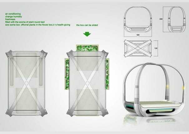 Έτσι για να μπαίνουμε κατευθεία στο.. ζουμί. Και το ‘κρεβάτι’ έχει τα πάντα! LED φώτα ανάγνωσης πάνω από το κεφάλι, ηχεία για μουσική στο ξύπνημα, ένα κουτί για να φυτά στις δύο πλευρές που έχουν και LED φώτα για να… μεγαλώνουν.