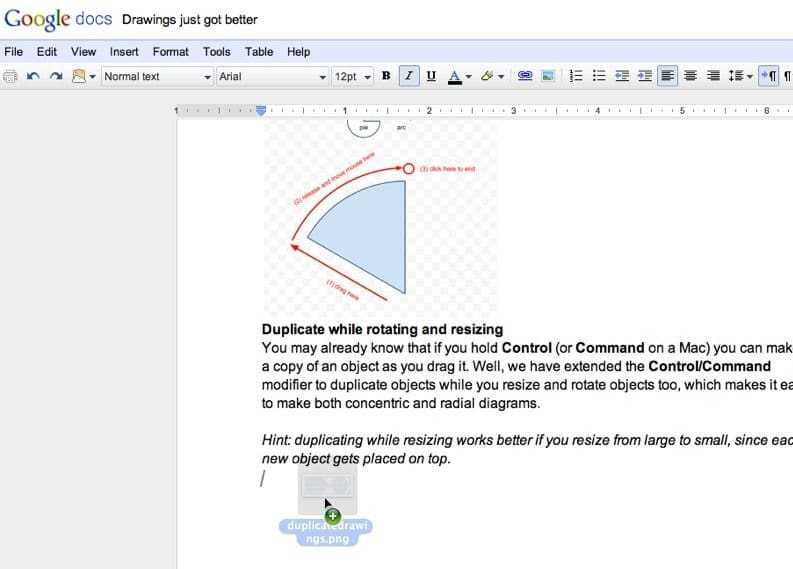 Τη δυνατότητα για drag-and-drop uploads εικόνων και προσθήκη εικόνας έχουν από σήμερα οι cloud επεξεργαστές Google docs. Η δυνατότητα υποστηρίζεται στις πιο πρόσφατες εκδόσεις των Firefox, Chrome και Safari.