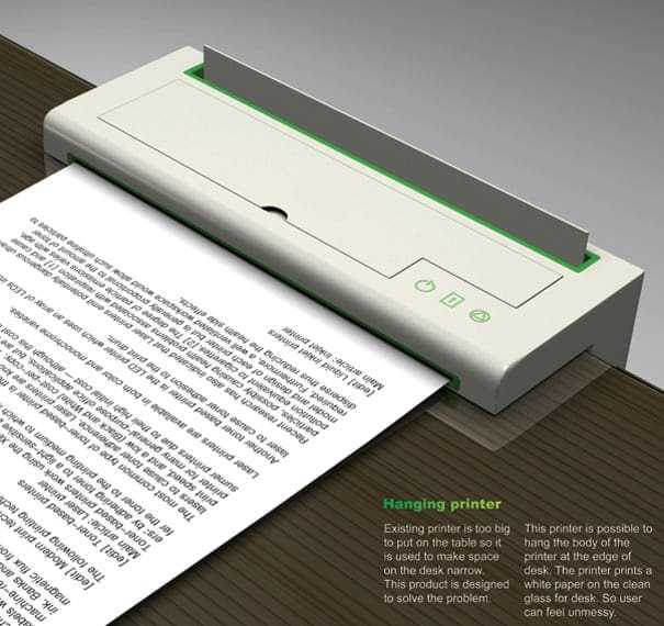 Εδώ λοιπόν έρχεται ο Hanging Printer του κου Jaesik Heo. Οι βελτιώσεις αφορούν την τοποθέτηση του και τον επιπλέον “κάδο αποθήκευσης” για να συγκρατείται το χαρτί.