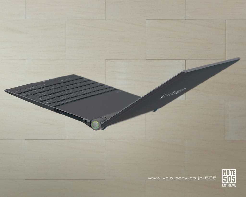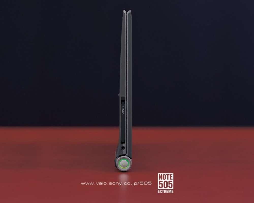 Πολύ απλά μια άλλη κατηγορία. Το nickel carbon σώμα του Vaio X505 — φυσικά συλλεκτικό πλέον, όπως το σημερινό Air, έκρυβε έναν ultralow voltage Intel Pentium M “ULV” 1.1GHz επεξεργαστή. Και, όπως το Air, ήταν λιγότερο από ένα εκατοστό στο πιο στενό του κομμάτι και 2.1 εκατοστά στο πιο παχύ – και σκεφτείτε πως αποτελεί σχεδίαση που έγινε το 2002.