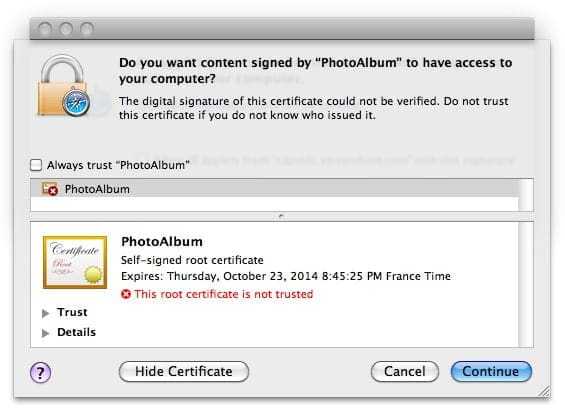 Αν επιτρέψουν να τρέξει λαμβάνουν μια ακόμη προειδοποίηση αν έχουν εγκαταστημένο ένα Mac antispyware πρόγραμμα όπως το VirusBarrier X6 Anti-Spyware. Εαν δεν δεχθούν την προειδοποίηση ή την αγνοήσουν το applet θα προσπαθήσει να κάνει σύνδεση με remote server και εγκαθιστά ένα rootkit, backdoor, command and control, και άλλα στοιχεία. Τα αρχεία αντιγράφονται σε άλλο αόρατο φάκελο — .jnana — στο home directory του user.