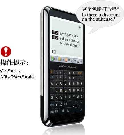 Αυτό που βλέπετε ακριβώς… Μοιάζει κάπως με υβρίδιο από παλιό Sony Ericsson κινητό, μοντέλο της Blackberry και smartphone, αλλά είναι ένα μηχανάκι που κάνει αυτόματα μετάφραση με βάση τα καλύτερα λεξικά της κινεζικής…