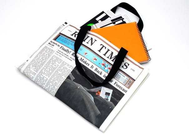 Είναι κατασκευασμένο από ένα κομμάτι πανιού ανθεκτικού στο νερό. Ονομάζεται “Newspaper Rain Bag” και δεν έχει καθόλου τεχνολογία αλλά… σκέψη από πίσω του. Είναι απλά ένα γεμάτο… ειρωνεία δημιούργημα με διαστάσεις 45.5 x 30.5 εκατοστά για κάθε ημέρα.