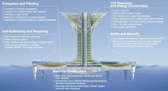 Η ιαπωνική εταιρία σκέφτεται να πάρει… στα ανοιχτά μια ολόκληρη πολιτεία. Μαζί με το σχολείο Super Collaborative Graduate School and Nomura Securities, ερευνά τα τεχνικά στοιχεία για την κατασκευή του Green Float concept – ένα αυτόνομο, χωρίς ρύπους σχέδιο για πόλη που επιπλέει κάπου στον Ειρηνικό Ωκεανό.
