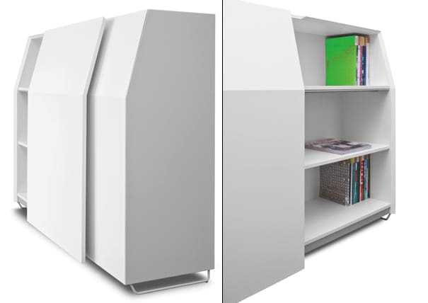 Είναι ένας πανέμορφος, λευκός ‘μονόλιθος’, μια όμορφη futuristic ντουλάπα που έχει όταν ανοίξει άφθονο χώρο για το γραφείο και τις απαραίτητες προμήθειες. Το AIR CABIN μπορεί να “καταπιεί μέχρι και 90 φακέλους” και τους κρύβει σε ένα τμήμα επίπλωσης που απλά μας ενθουσίασε…