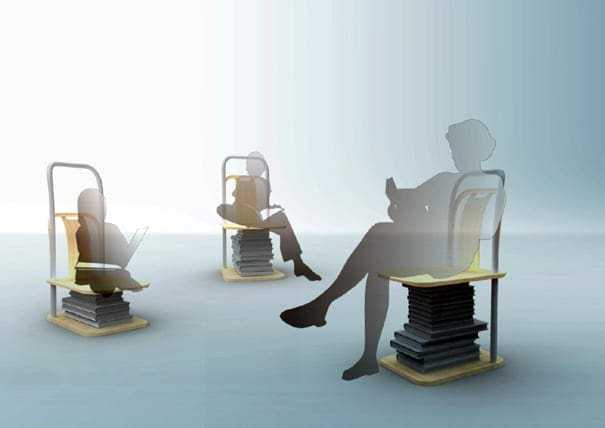 Από την άλλη ο πιο συνηθισμένος τρόπος να μετράς την ανάπτυξη του είναι σίγουρα ο… τοίχος. Ακριβώς αυτή η τόσο ζεστή και ανθρώπινη διαδικασία είναι που ενέπνευσε τον κο Ho-Chieh Hsu, σχεδιαστή, να συλλάβει και να αναπαραστήσει την οικογενειακή αυτή στιγμή με μια… καρέκλα. Μια καρέκλα που αυξάνει ή μειώνει το ύψος της με την προσθήκη βιβλίων.