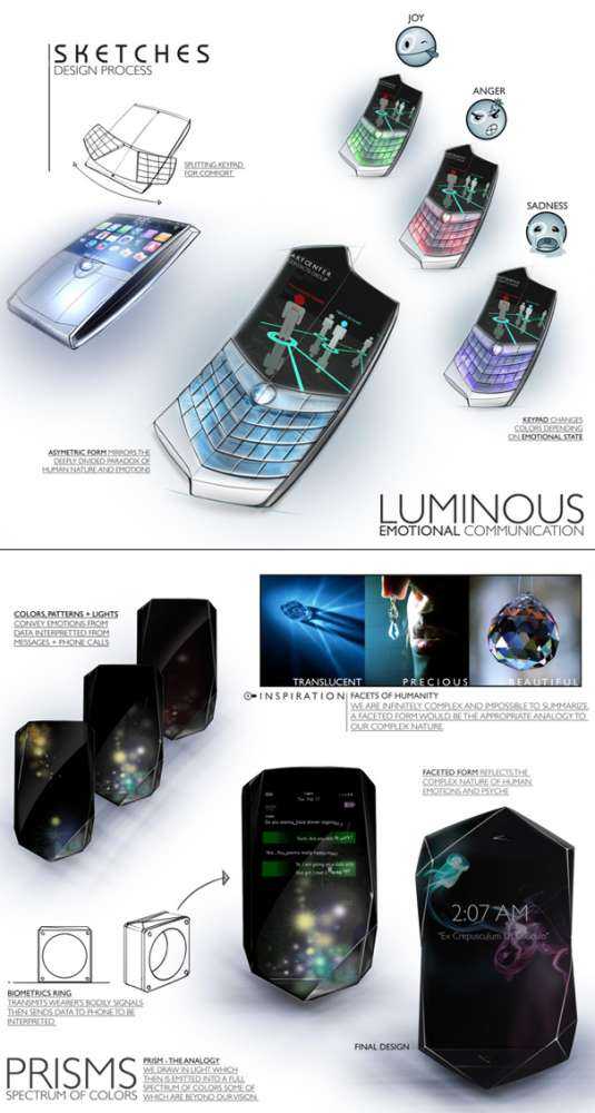 Το αποτέλεσμα της άσκησης είναι το Blackberry Empathy concept. Ένα κινητό τηλέφωνο που χρησιμοποιείται μαζί με ένα βιομετρικό δαχτυλίδι που φορά ο χρήστης (ζήλευε Green Lantern…) και συλλέγει “δεδομένα αισθημάτων”. Από χαρακτηριστικά έχουμε ένα διαφανές OLED για οθόνη που όταν δεν χρησιμοποιείται σκουραίνει. Στο μπροστινό μέρος είναι επιφάνεια αφής και στο πίσω κανονικό πληκτρολόγιο.