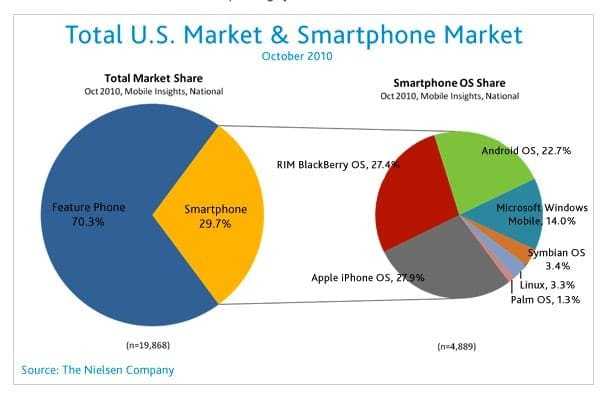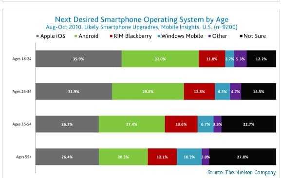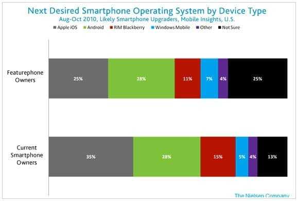 Τον Οκτώβρη πάντως, σύμφωνα με τη Nielsen, το Android είχε ξεπεράσει το iPhone και τα BlackBerry για να ονομαστεί το πιο “δημοφιλές λειτουργικό σύστημα που έχει αγοραστεί από όσους πήραν smartphone τους τελευταίους έξι μήνες”…
