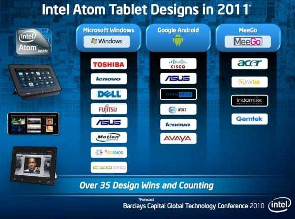 Έχει περάσει δύσκολα μονοπάτια η Intel στον χώρο του φορητού computing. Μιλώντας όμως στο Συνέδριο Barclay Capital Global Technology, ο CEO της εταιρίας αναφέρει πως 35 Moorestown tablet με μείγμα από Windows, Android και MeeGo θα φτάσουν στην αγορά το 2011.
