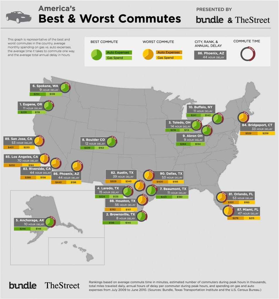 Για να βάλει σε κατηγορίες τις πόλεις το Bundle μάζεψε πληροφορίες για δαπάνες κατά τη διάρκεια της μετακίνησης προς η δουλειά, τον αριθμό των μιλίων της διαδρομής, ώρες καθυστέρησης, συντήρηση και κόστος καυσίμων.