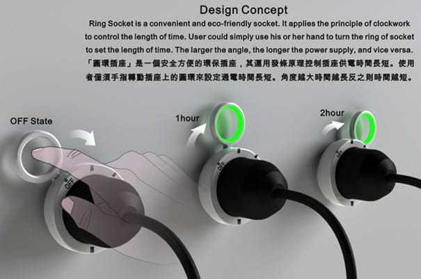 Κάθε βήμα με κατεύθυνση την μείωση της κατανάλωσης είναι καλό πράγμα… Και άρα έχουμε το Socket. Είναι μια σχεδίαση που βασίζεται στο πως δουλεύει ένας χρονοδιακόπτης. Ρυθμίζετε το δαχτυλίδι για μια ώρα, δύο ώρες, ή περισσότερο. Μόλις τελειώσει ο χρόνος, απενεργοποιείται η πρίζα. Απλά πράγματα. Δεν είναι κακό…