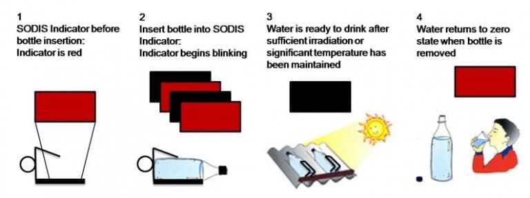 Αυτή η προσέγγιση ονομάζεται SODIS (SOlar DISinfection of water in plastic bottles), και αφαιρεί το 99.9% των βακτηρίων και των ιών – αποτελέσματα παρόμοια με εκείνα που έχουμε από τη χλωρίωση.