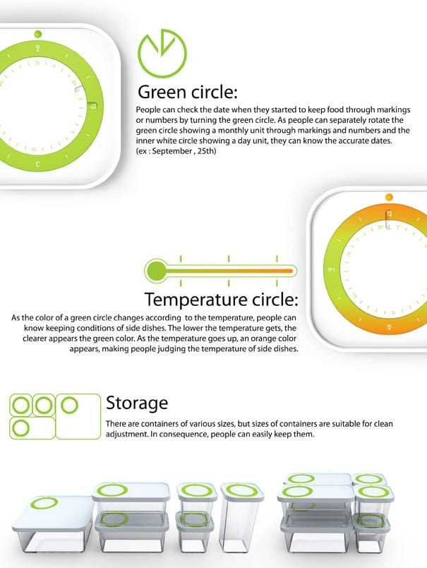 Το καπάκι διαθέτει έναν ρυθμιστή που μοιάζει με ρολόϊ και μας λέει ουσιαστικά πόσο καιρό είναι αποθηκευμένο το φαγητό μέσα στο… ‘τάπερ’. Απλά πράγματα: δεν θα χρειαστεί να αναρωτηθεί ποτέ ο μικρός “…τώρα από πότε είναι αυτά τα γεμιστά” όταν τον πιάσει πείνα το βράδι. Ωραίο…