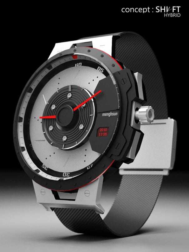 Το Shift Hybrid είναι ένα ρολόι που βασίζεται στη μηχανολογία των αυτοκινήτων. Δίσκοι φρένων, κοντέρ και κιβώτιο ταχυτήτων αλλά και ζώνες ασφαλείας και καθίσματα ήταν η έμπνευση. Με μέρη από αλουμίνιο, ανθρακονήματα, λάστιχο και γυαλί είναι πραγματικά ένα ‘εργαλείο’ ανδρικής απόλαυσης…