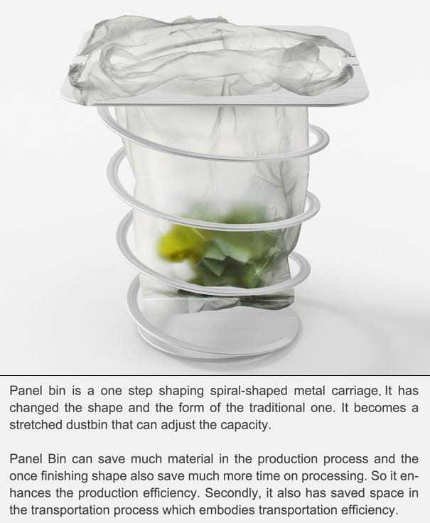 Το Panel Bin έχει μια απλή λογική: είναι ένας μεταλλικός σκελετός που ανοίγει και τεντώνεται σε μεταβλητά ύψη ανάλογα με το πως σε βολεύει. Ουσιαστικά ένας κάδος σκουπιδιών ‘εύκολος΄στην τοποθέτηση…