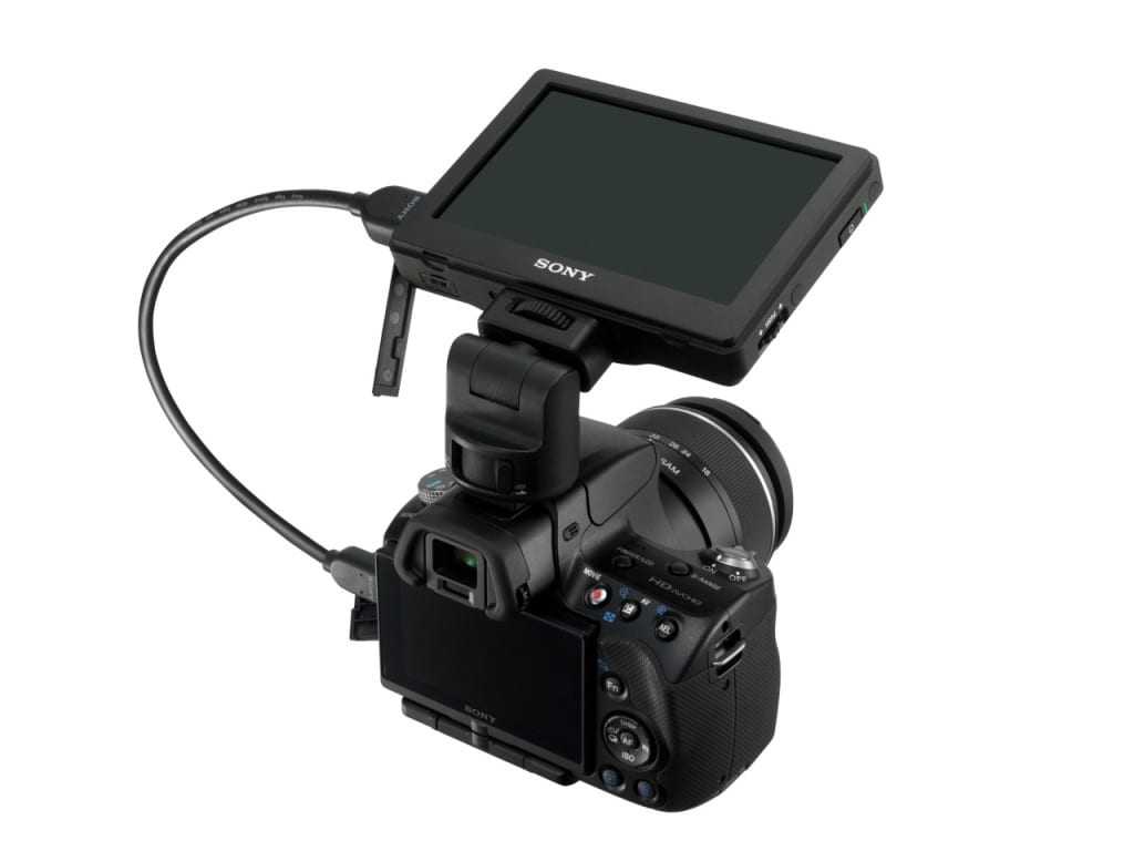 Μήπως η οθόνη είναι σχετικά μικρή για αυτό; Τα καλά νέα είναι πως οι Sony θα έχουν τη δυνατότητα να χρησιμοποιήσουν το αξεσουάρ CLV-V55 για δουλειά. Είναι μια οθόνη 5” -με ανάλυση WVGA 800 x 480 pixel που κουμπώνει στη μηχανή. Το θετικό είναι πως η CLM-V55 μπορεί να τοποθετηθεί στις περισσότερες φωτογραφικές μηχανές αλλά πολλές συμβατές βιντεοκάμερες με υποδοχή auto-lock accessory shoe ή ένα ISO shoe με αντάπτορα (το δίνει στη συσκευασία η Sony).