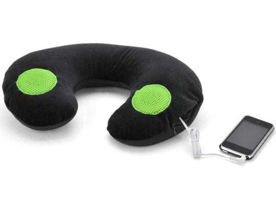 Με δύο ηχεία και ενσωματωμένο μαξιλάρι – ή αντίθετα αν το θέλετε…, είναι ένα μίνι στερεοφωνικό με υποδοχές που μπορείτε να απολαύσετε ενώ κοιμάστε. Με διαστάσεις 49 × 30 × 8,5 ~ 6,5 εκατοστά (πλάτος Χ πάχος × βάθος) και βάρος 580 γραμμάρια υπάρχει και παιδικό μοντέλο (60 × 40 × 20 εκατοστά)..
