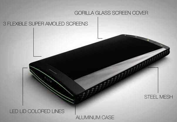 Τι κάνουμε εδώ; Παίρνουμε τρεις εύκαμπτες AMOLED οθόνες αφής και ένα πληκτρολόγιο αφής και έχουμε το Flip Phone: ένα τριγωνικό κομμάτι από ηλεκτρονικά – κάτι σαν τις… Toblerone, και λίγο Android. Τέλειο…