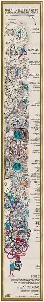 Πριν από ελάχιστο καιρό οι εφημερίδες ήταν ο βασιλιάς ενώ στη δεκαετία του ’50 το ραδιόφωνο ήταν σε κάθε γωνιά των σύγχρονων κοινωνιών. Για να πούμε δε την αλήθεια, πριν από τον τηλέγραφο τα… περιστέρια ήταν οι αγγελιοφόροι μας! Το ‘περιεχόμενο’ λοιπόν – και όχι μόνο οι πληροφορίες, είναι η κύρια ενασχόληση κάθε κοινωνίας. Σε αυτό το όμορφο infographic πηγαίνουμε από τις όμορφα ζωγραφισμένες… σπηλιές στο Flipboard και το Kindle. Πολλά άλλαξαν αλλά πάντα θέλουμε να… καταναλώνουμε πληροφορίες!