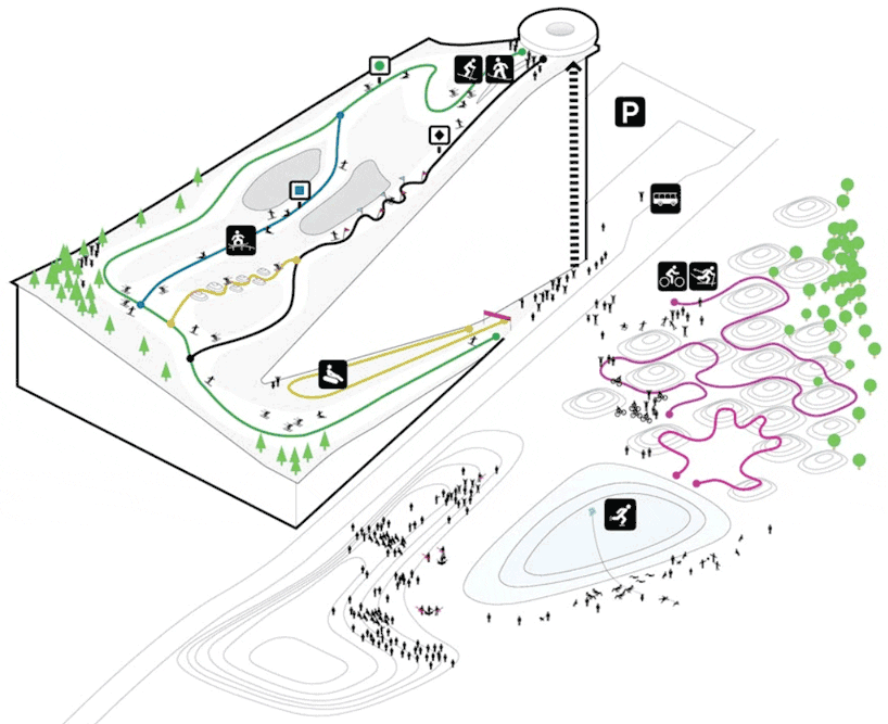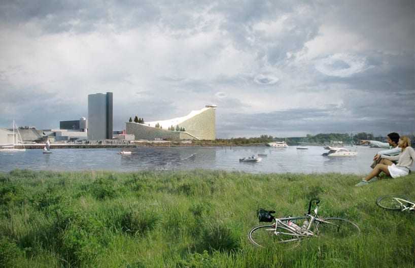 Το πραγματικά απίστευτο, τρελό αυτό κτίριο είναι βασικά ένα τεράστιο κέλυφος που έχει σκεφτεί το Δανέζικο αρχικτεκτονικό γραφείο Bjarke Ingels Group. Το σχέδιο είναι με αυτή την κατασκευή να καλυφθεί ένας ολοκαίνουργιος αποτεφρωτής απορριμάτων που θα στηθεί στην Κοπεγχάγη και και θα μετατρέπει τα σκουπίδια σε ενέργεια. Αντί να ετοιμαστεί ένα ‘γκρίζο’ βιομηχανικό κτίριο το όλο project θα δημιουργήσει ένα πάρκο για σκι που θα λειτουργεί όλο το χρόνο και όλες τις πίστες ακόμη και… ‘μαύρη’ για τους προχωρημένους. Ανελκυστήρας θα πάει άτομα στην κορυφή ενώ το υπόλοιπο θα είναι πάρκο και χώροι αναψυχής.
