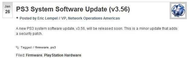 Μόλις πριν λίγες ώρες το επίσημο Sony PlayStation blog ενημέρωσε πως το PS3 θα λάβει αυτό που ονομάζεται “minor” update, δηλαδή “μικρή αναβάθμιση” κάτι που σημαίνει πως μιλάμε για την έκδοση 3.56. Φυσικά όλα τα… μάτια ήταν χθες στο Sony press event που έλαβε χθες χώρα το Tokyo και όπου είδαμε το νέο φορητό μηχανάκι NGP αλλά περιμένουμε να δούμε τι θα φέρει από νέες χρηστικές λειτουργίες το φρέσκο λογισμικό ενώ σίγουρα θα υπάρχει security patch όπως στη προηγούμενη αναβάθμιση αφού το νέο PS3 jailbreak κάνει τις… γύρες του εδώ και μέρες…