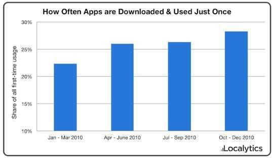 Με 300,000 iPhone apps διαθέσιμες και 200,000 Android apps διαθέσιμες για κατέβασμα, οι καταναλωτές δεν μπορούν να ανεχτούν εφαρμογές που δεν καλύπτουν τα στάνταρς τους από την ΠΡΩΤΗ στιγμή και χρήση! Όπως λέει η εταιρία Localytics, το 26% των εφαρμογών δεν μας… αρέσει και τις χρησιμοποιούμε μόνο στο κατέβασμα.