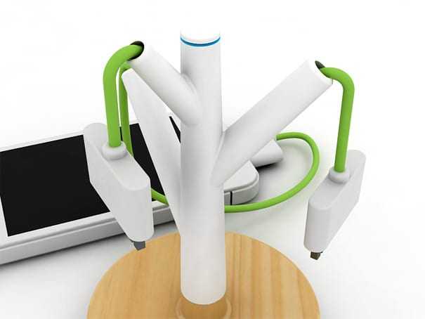 Αυτή η πρωτότυπη σχεδίαση είναι ένα πλαστικό δέντρο/φορτιστής με ποικιλία από συνδέσμους. Από τα ‘κλαδιά’ του ‘δέντρου’ μπορείς να τραβήξεις τους αντάπτορες. Ωραίο και θα δείχνει όμορφο πάνω στον πάγκο της κουζίνας…