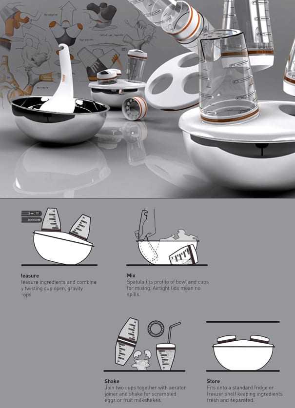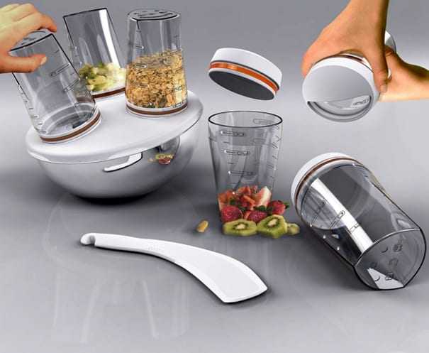 Τα συστατικά στην κούπα πέφτουν στο μπολ με μια απλή κίνηση και η μορφή τους ακόμη είναι οπτικά ‘ερεθιστική’ . Το πλεονέκτημα είναι πως ο γονιός και το παιδί μετρούν, αναμειγνύουν και δοκιμάζουν συνδυασμούς μαζί o οπότε και υπάρχει πειραματισμός σε ‘οικογενειακό’ επίπεδο.