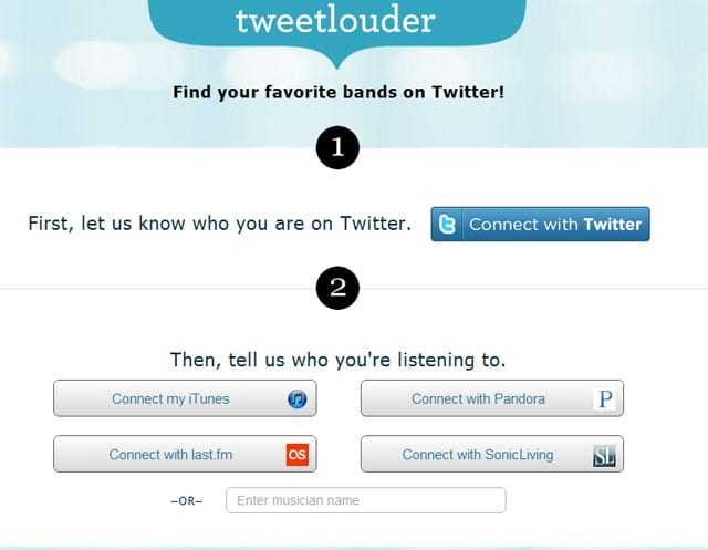 Ένα νέο ωραίο εργαλείο είναι το TweetLouder, μια όμορφη app που σκανάρει ουσιαστικά μέσα από τα iTunes, Pandora, Last.fm και/η τον λογαριασμό SonicLiving για να βρει τις αγαπημένες σας μπάντες. Στη συνέχεια αυτόματα δείχνει Twitter accounts με τους αγαπημένους σας μουσικούς..