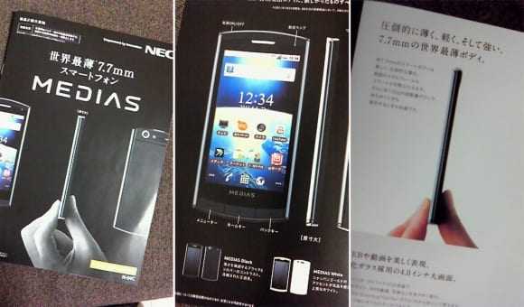 Το νέο  NEC MEDIAS E-04C  είναι μόλις 7.7 χιλιοστά παχύ στο πιο στενό του σημείο. Μοντέλο για Japan με λειτουργικό Android 2.2 Froyo και , σύμφωνα με το Draft life with blog, πρόκειται να κατευθυνθεί στην  NTT DoCoMo αργότερα στο μήνα.Το  MEDIAS E-04C ισχυρίζεται πως κερδίζει κατά κράτος και το Samsung’s Galaxy S II με τα 8.49 χιλιοστά αλλά και το Sony Ericsson XPERIA Arc των 8.9 χιλιοστών.
