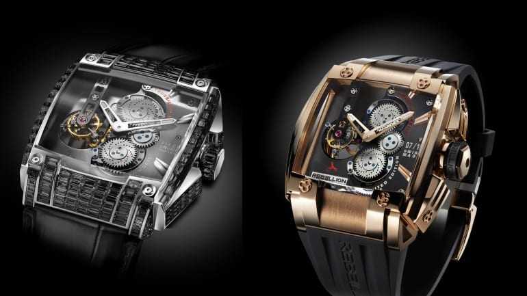 Αν 500 χρόνια μετά έρθουμε στο σήμερα θα δούμε πως πραγματικά είναι πλέον… κόσμημα (!) ένα ρολόι χειρός. Το raison d’etre των ρολογιών Rebellion που βλέπετε είναι κάτι τέτοιο. Στα δεξιά το REB-5 που πωλείται προς $196,000 και στα αριστερά η…’Αυτού Μεγαλειότης’, το Rebellion Black Diamond REB-5 που τιμάται… $928,500. Ρολόγια ή ακριβά κοσμήματα;