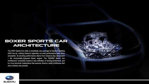 Η Subaru έχει ‘συνδέσει’ το όνομα της με την τετρακίνηση αλλά και τους κινητήρες boxer… Στη συνεργασία της με την Toyota και ένα σπορ πλαίσιο που και οι δύο εταιρίες θα χρησιμοποιούν, η Subaru αρχικά δεν θα χρησιμοποιεί τετρακίνηση αλλά ΔΕΝ μπορεί να… παραπετάξει την οριζόντια τοποθέτηση του κινητήρα.