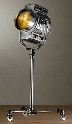 Γιορτάζετε τα… επερχόμενα βραβεία Όσκαρ ή έχετε μια σινεφίλ… διάθεση; Γιορτάστε την αγάπη σας για τον κινηματογράφο και ταυτόχρονα με κάτι όμορφο στο χώρο με την Hollywood Studio Floor Lamp ($1,850). Από συμπαγές αλουμίνιο και ατσάλι, μια νέα έκδοση πιστή στο σχεδιασμό των κανονικών ’40s studio προβολέων. Απίστευτα ποιοτικό με ρύθμιση ύψους και το μόνο που δεν περιλαμβάνει είναι… μια λάμπα!