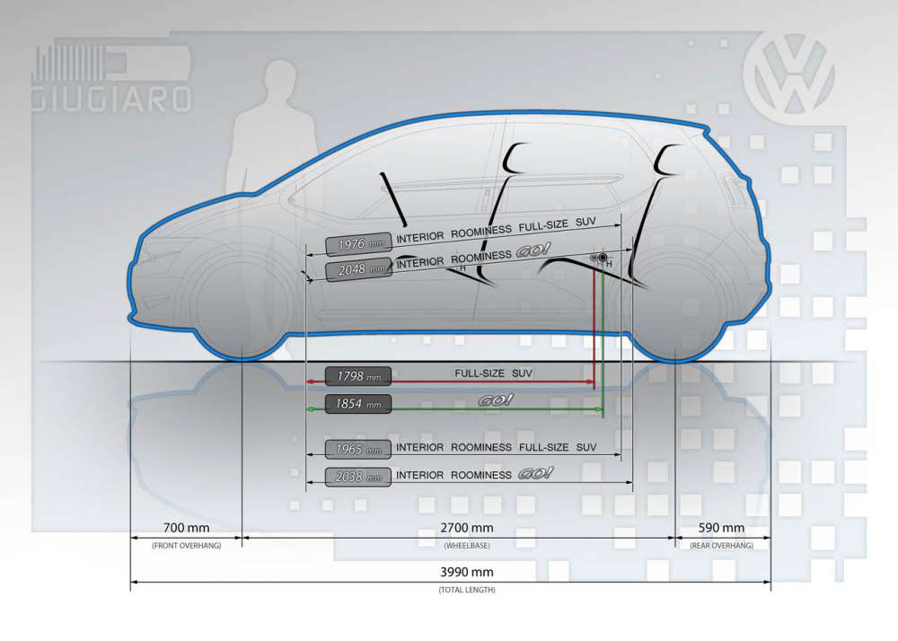 Μετά από έρευνα που έγινε για να καθοριστεί πως η Volkswagen θα σχεδιάζει τα οχήματα της στο μέλλον, ο Giugiaro (που σήμερα ανήκει στο Volkswagen Group) εστίασε σε δύο συγκεκριμένα concept,το ένα από τα οποία είναι το εικονιζόμενο Go!