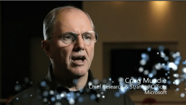 O κύριος Mundie έδειξε και το παρακάτω βίντεο, ένα βασισμένο σε Image Based 3D client παρόμοιο με το Photosynth να τρέχει σε Windows Phone 7. Έδειξε και βασικά χαρακτηριστικά στο τρέχον Microsoft Surface, όπως μερικές διασκεδαστικές βασισμένες στη φυσική apps αφής και τη δυνατότητα να σκανάρει φωτογραφίες αλλά και νέα φωτορεαλιστικά avatars.