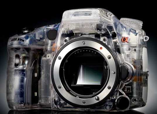 Στην νέα, πλήρη Sony ανακοίνωση πάντως σύμφωνα με το Google Translate, λεει: “Adopted a semi-transparent mirror ‘Translucent Mirror Technology’ and the newly developed “Exmor” APS HD CMOS sensors will be installed in series A mid-mount machine concept model (skeleton model) on display.”