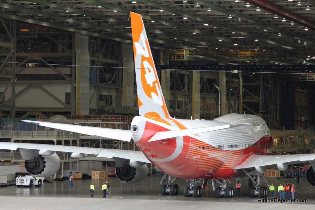 Αν το πετύχει η εταιρία αυτό, θα έχει καταφέρει να πετύχει την πρώτη πτήση σε λιγότερο από έναν μήνα από την παρουσίαση, πολύ πιο γρήγορα από το 787 Dreamliner, που παρουσιάστηκε στις 8 Ιουλίου του 2007 αλλά εκτέλεσε την πρώτη του πτήση στο 15 Δεκεμβρίου του 2009 (!). Η έκδοση cargo του 747-8 βρέθηκε στον αέρα στις 8 Φεβρουαρίου του 2010.