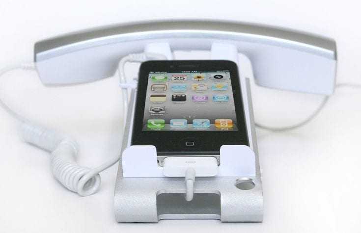 iClooly Handset και Sync Stand. Απλά τοποθετείς το iPhone 4, 3GS, 3G, ή Android κινητό σου με μια θύρα ακουστικών 3.5 mm στο σταντ, τοποθετείς το κινητό όπως το σταθερό και… απλά δεν υπάρχουν πλέον τα κινητά!