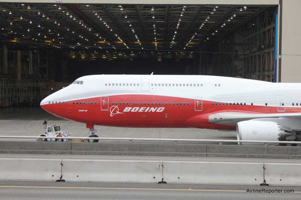 Άφησε το Everett της Washington συνοδευόμενο από δύο Lockheed T-33 που το ‘κυνηγούσαν’ για να καταγράφουν τη συμπεριφορά του και προσγειώθηκε στις εγκαταστάσεις του Boeing Field στο Seattle αφού έμεινε στους ουρανούς για 4 ώρες και 25 λεπτά. Το 747-8 είναι η μεγαλύτερη δημιουργία της Boeing μέχρι σήμερα με πτέρυγα μήκους 69 μέτρων και δυνατότητα να μεταφέρει 605 άτομα.
