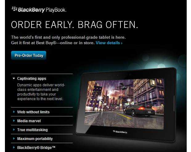 Το BlackBerry PlayBook, η προσπάθεια της RIM να μπει στα… χωράφια των tablet είναι διαθέσιμη για προ-παραγγελίες σε τρεις εκδόσεις με τιμή από $499.99…