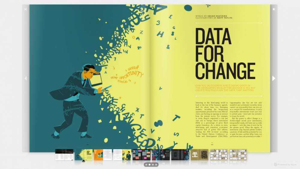 Τα ίδια τα άρθρα έχουν θεματολογία για βασικά οικονομικά και τεχνολογικά θέματα από ποικιλία freelancer συντακτών και ειδικών συντακτών. Η Google έχει και θέματα από τον γνωστό στο χώρο Simon Rogers (συντάκτης της The Guardian‘s Datablog), τον Ulrike Reinhard (αρχισυντάκτης του WE Magazine), και άλλους δημοσιογράφους για το όλο project.