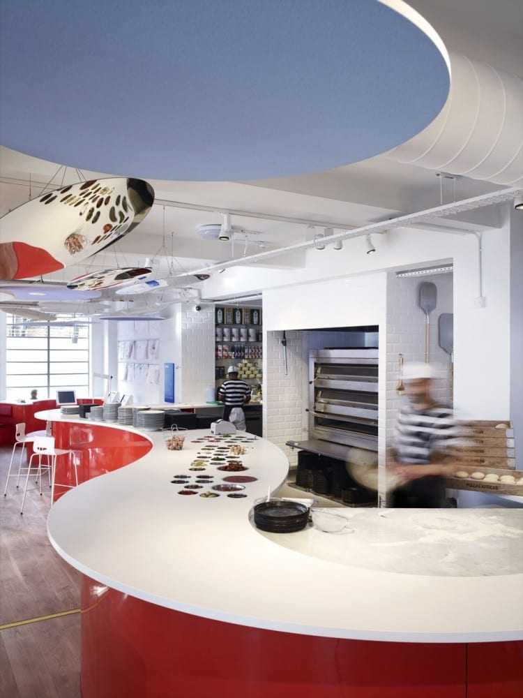 Το καλοκαίρι του 2010, η εταιρία PizzaExpress έδωσε στη λονδρέζικη εταιρία σχεδιασμού Ab Rogers Design (ARD) τη δουλειά της… μεταμόρφωσης του εστιατορίου της στην οδό Richmond σε ένα ‘Living Lab’ που θα συνδυάζει πειραματικό σχεδιασμό, εξελίξεις στην ακουστική των εστιατορίων (!) και μια νέα προσέγγιση με άλλη… ενέργεια στην παρουσίαση και την υπηρεσία.
