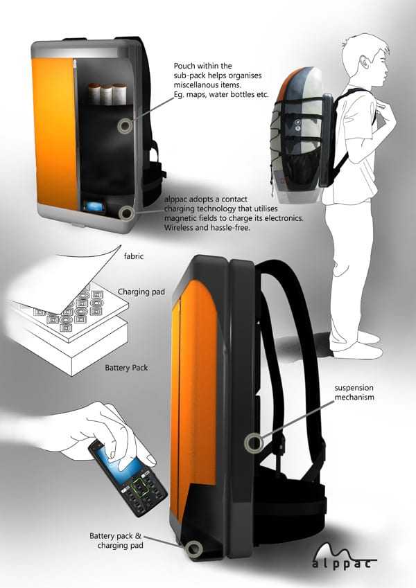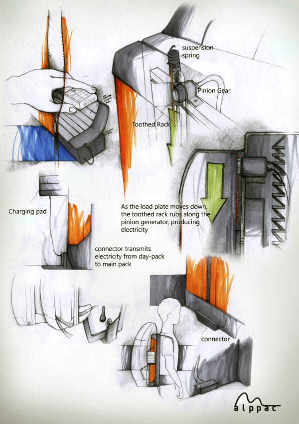 Από την άλλη τηλέφωνο, φωτογραφική και laptopάκι… Το πρόβλημα είναι πως οι μπαταρίες ότι και να κάνουν οι κατασκευαστές είναι νεκρές σε ελάχιστο χρόνο. Το Alppac είναι για εμάς λοιπόν. Χρησιμοποιεί έναν καινοτόμο μηχανισμό που παράγει ενέργεια όταν περπατάς!