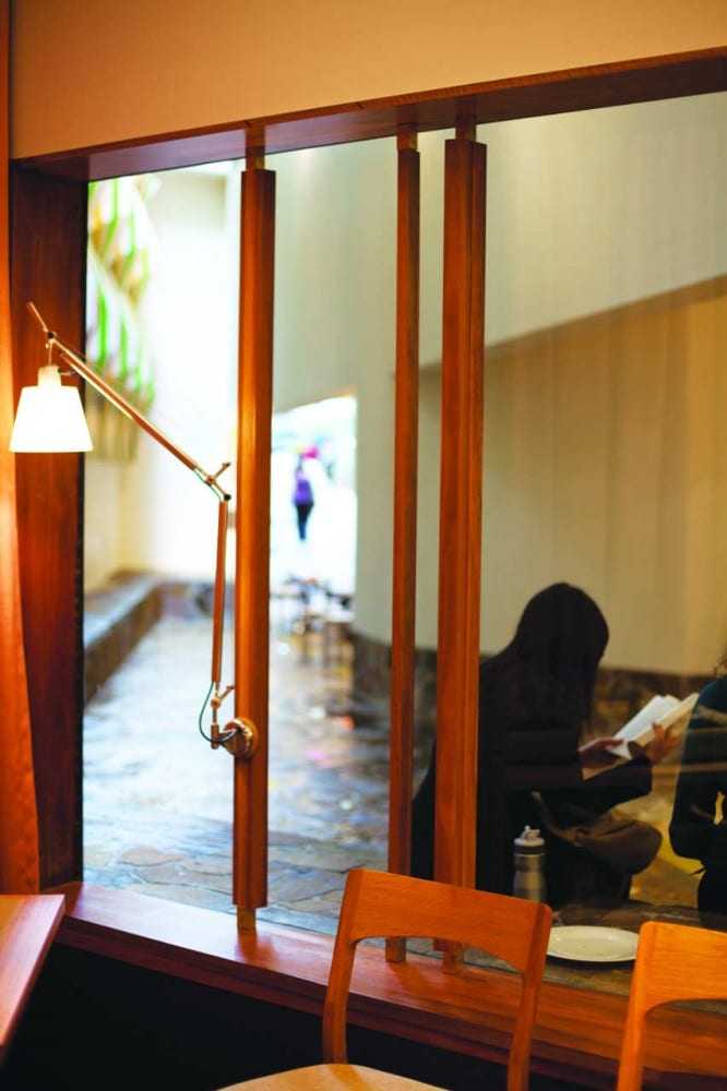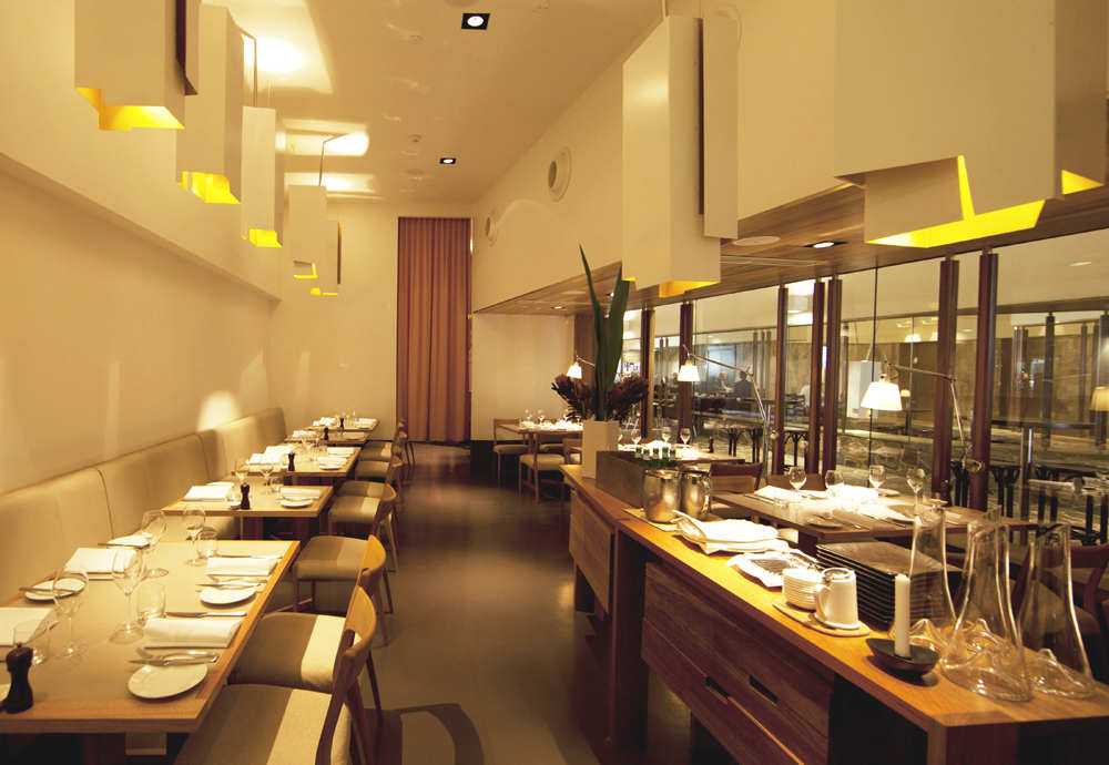 Μετά από μελέτη το αποτέλεσμα μοιάζει κάπως εκκεντρικό αλλά τελικά είναι ένα πολύ φιλόξενο εστιατόριο που δανείζεται στοιχεία για τα υλικά κατασκευής από την είσοδο του κτιρίου ενώ εύκολα διαφαίνονται και τα όρια….